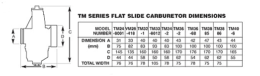 The Mikuni TM series flat slide carburetors provide a significant improvement over OEM round slide and CV type carburetors. The flat slide and venturi designs allow smoother airflow and higher velocities thereby increasing the pressure differential at the needle jet. This efficient design allows better atomization which enhances throttle response and power output.