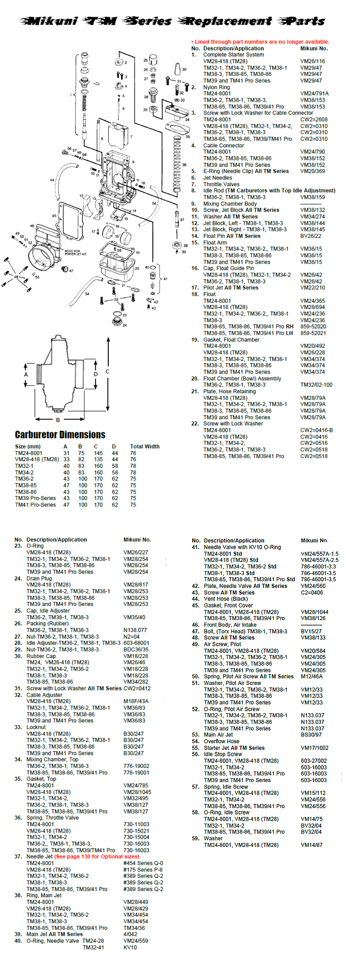 Mikuni TM Pro Series Flatslide High Performance Carburetors